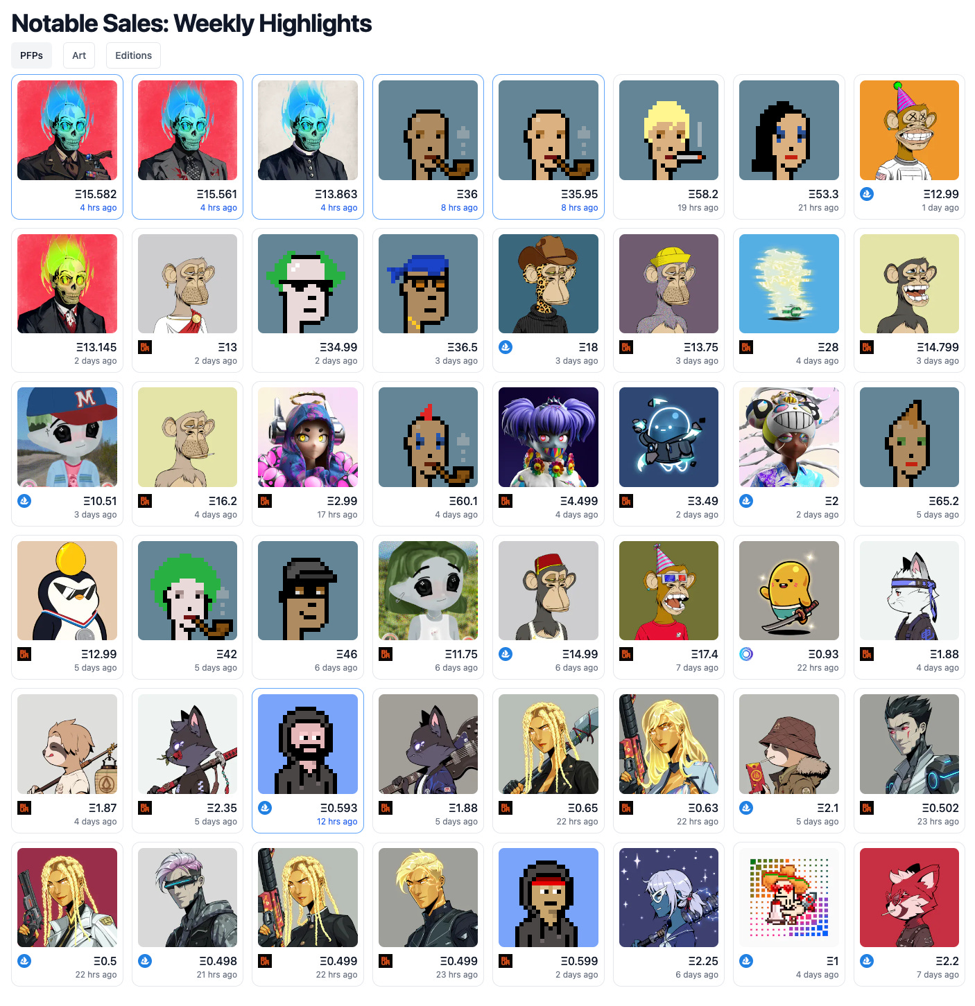 Last week, the primary NFT PFP projects that saw significant sales included BAYC, Punk and Mad Lads. These collections are famous for their charming characters and distinctive designs, which make them very popular in NFT market.