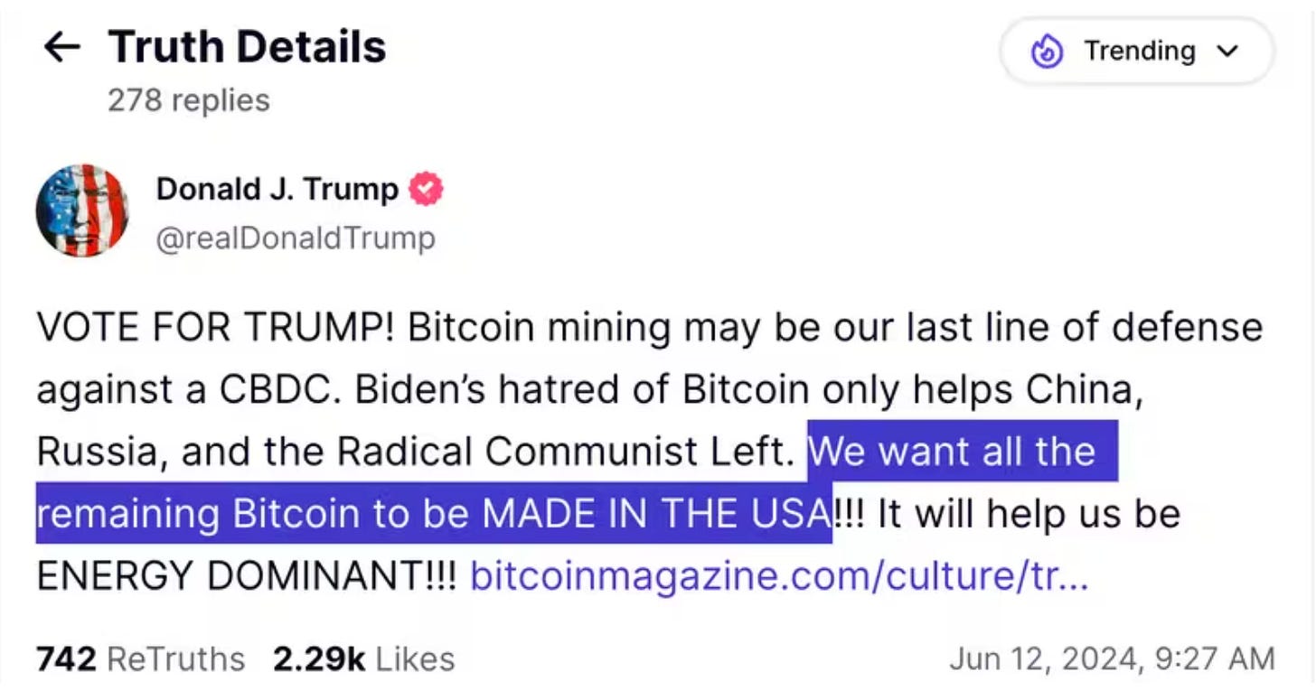 📌US Politics|Donald Trump Says He Wants All Remaining Bitcoin to Be 'Made in USA' (June 12)