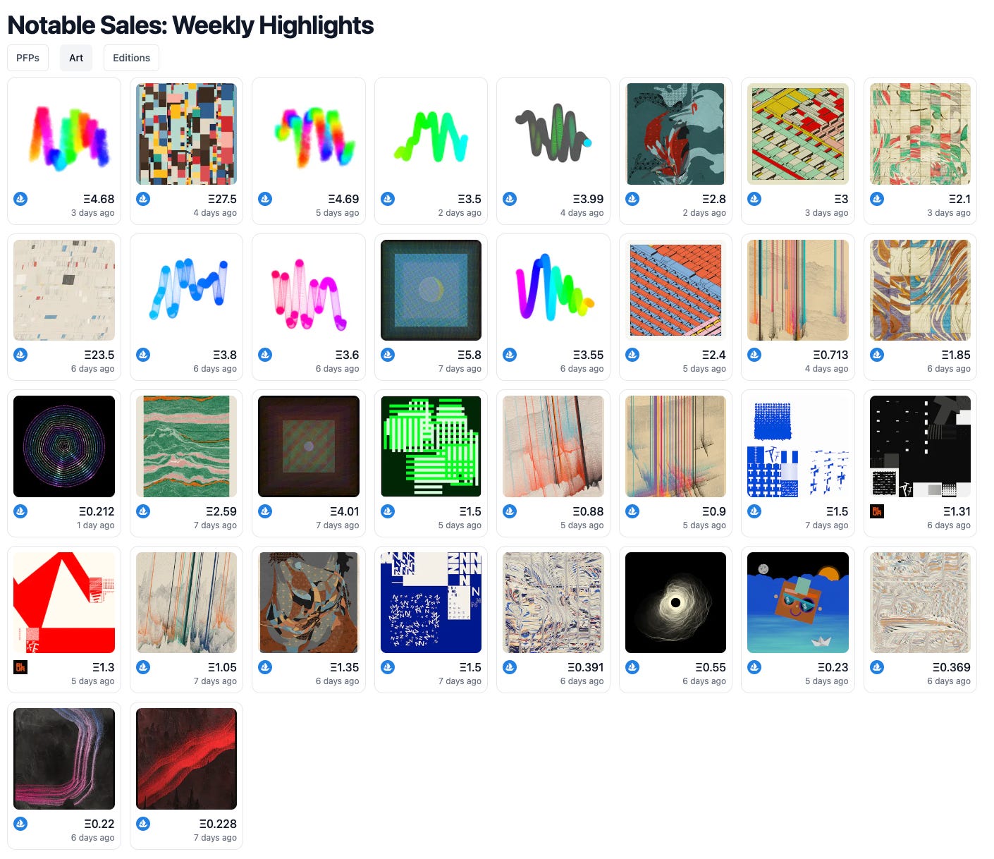 Chromie Squiggle, Fidenza and Incomplete Control stood out as the main NFT art projects sold last week. Incomplete Control experienced a rise in trading price, regaining public attention due to its distinct aesthetic and creative ingenuity.