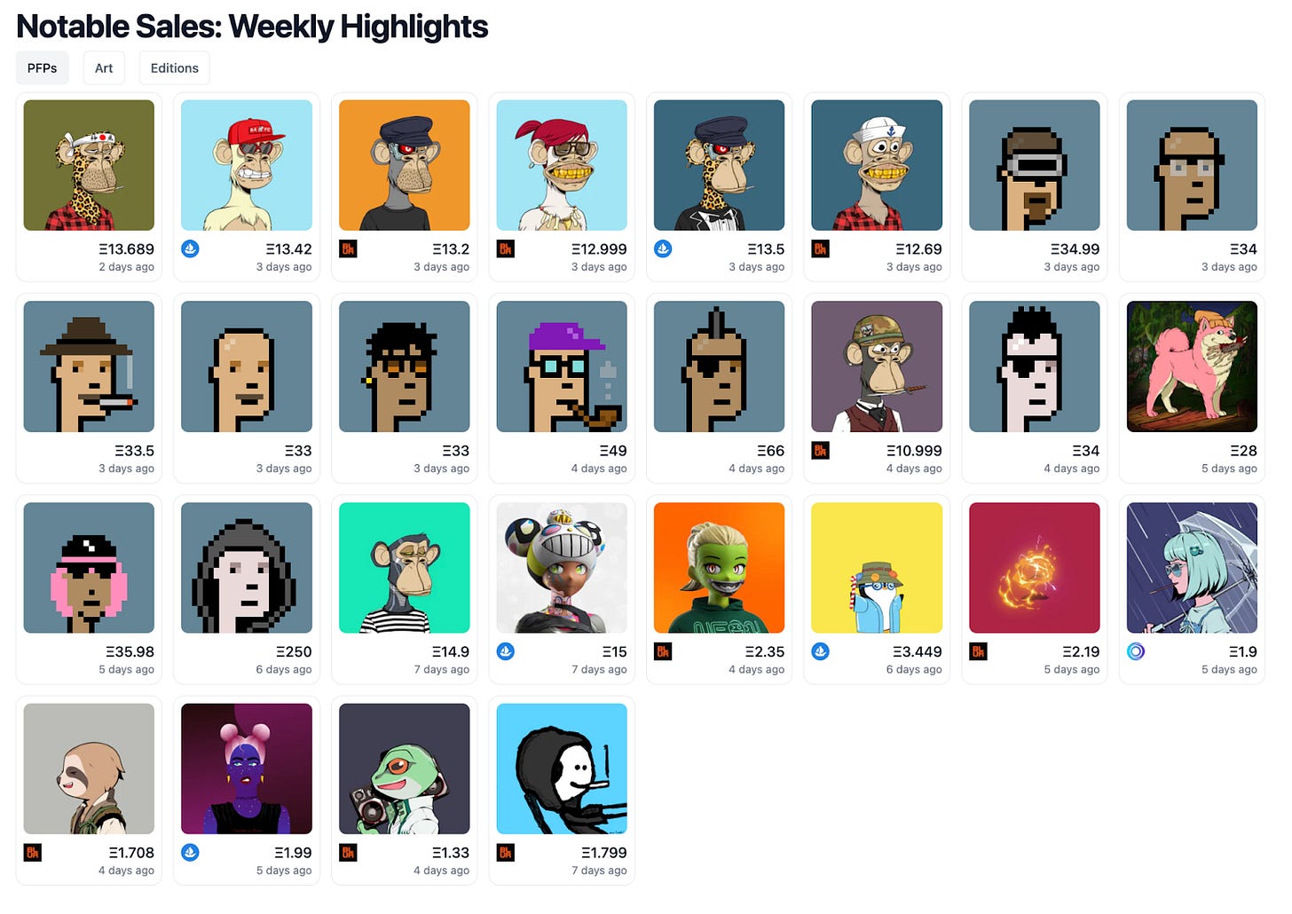 Last week, the primary NFT PFP projects that saw significant sales included BAYC, Punk and BAKC. These collections are renowned for their charming characters and distinctive designs, making them highly popular in the NFT market.