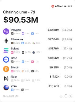 Over the past week, NFT marketplace volume went down to $90.53 million. Polygon claimed the top spot with a 34% market share while with $30.8M chain volume, surpassing both Ethereum and Solana.